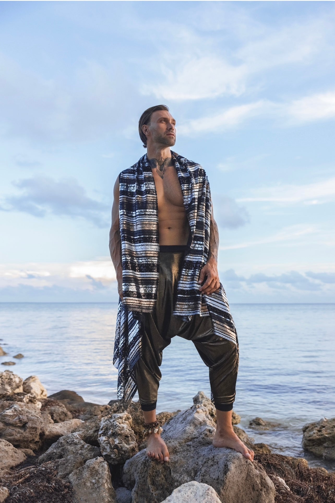 “Lunar Echo Set” – Textured Silver Robe & Harem Pants for Men