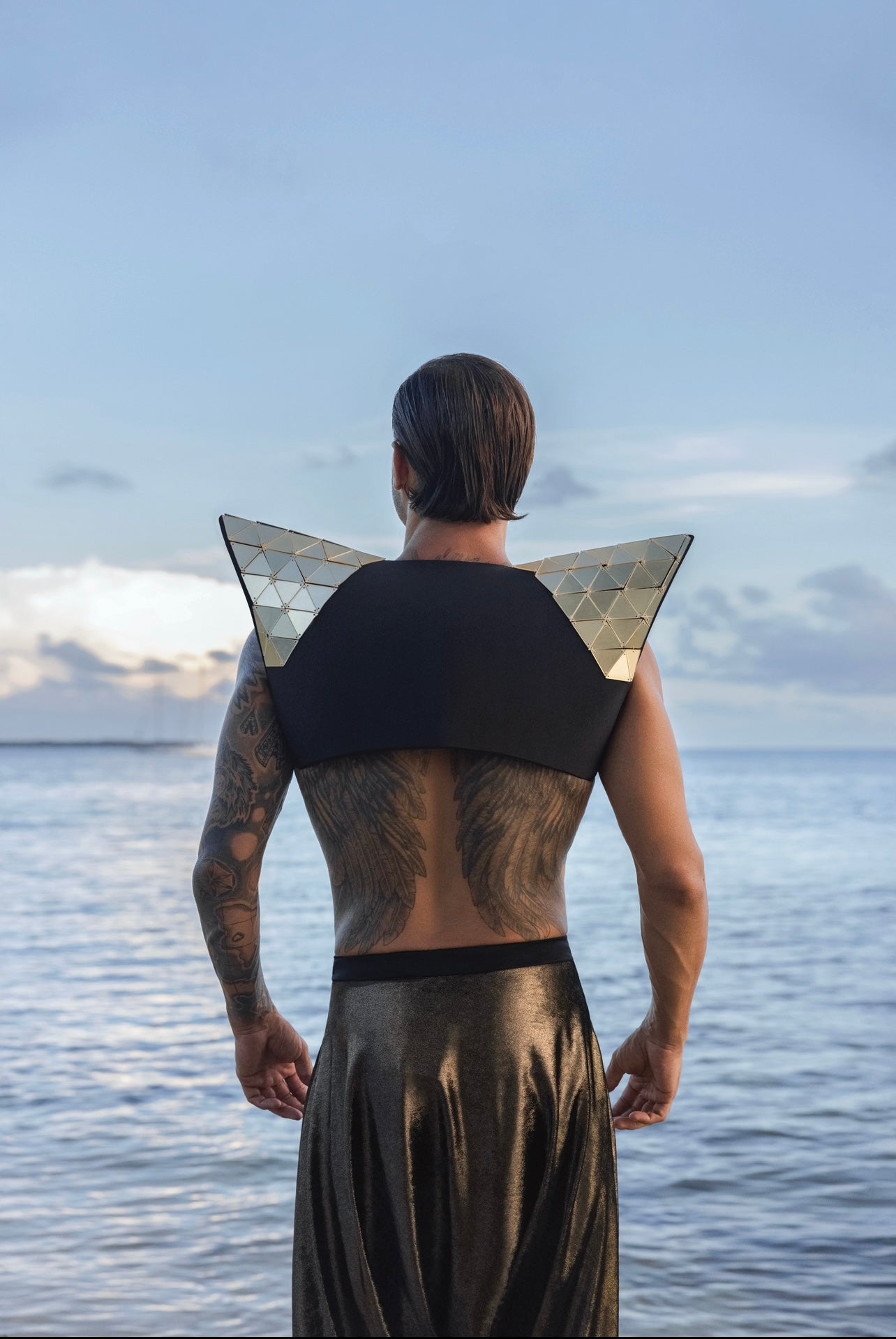 “Galactic Mirage Set” – Metallic Bronze Harem Pants & Draped Vest