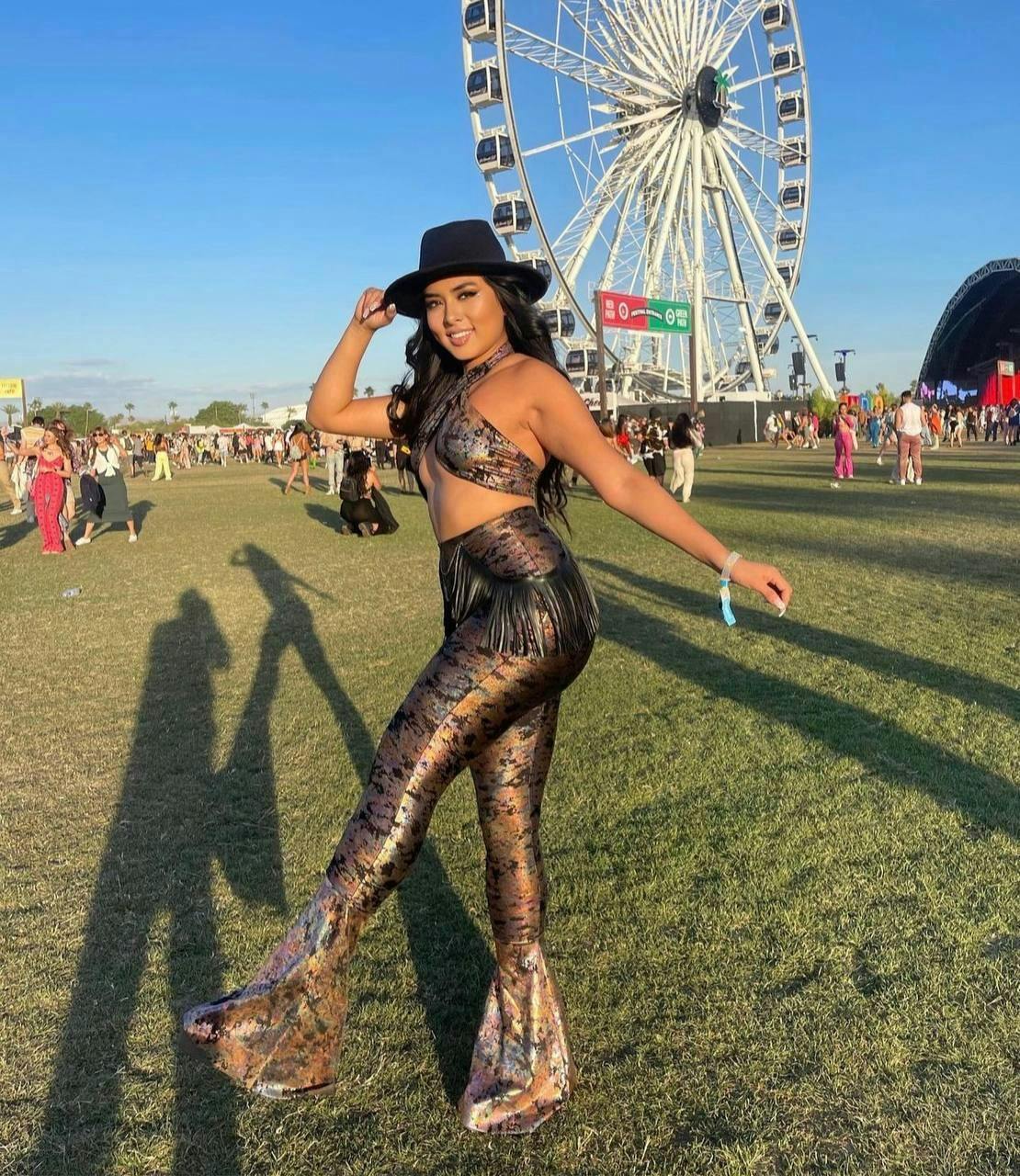 I recently wore the Abstract Bronze Set from Zenma to Coachella, and it was the perfect choice for the festival! This set is a true blend of style, comfort, and uniqueness, making it ideal for a vibrant and energetic event like Coachella.