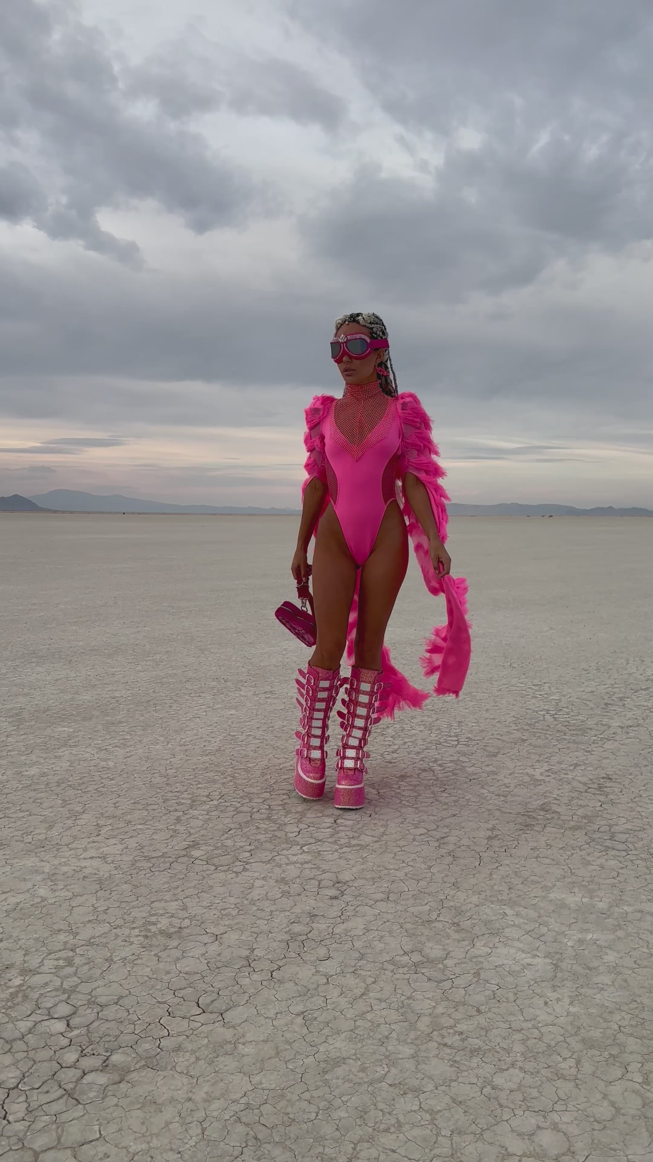 Stand out in the crowd with our stunning Neon Pink rhinestones Sleeves Bodysuit, designed for ultimate impact at festivals, Burning Man, and rave events. This eye-catching bodysuit features vibrant neon pink fabric and unique braided fur sleeves that add a touch of extravagance and flair to your festival look. Perfect for those who love bold and daring fashion, this bodysuit is made from high-quality materials ensuring comfort and durability throughout your event.