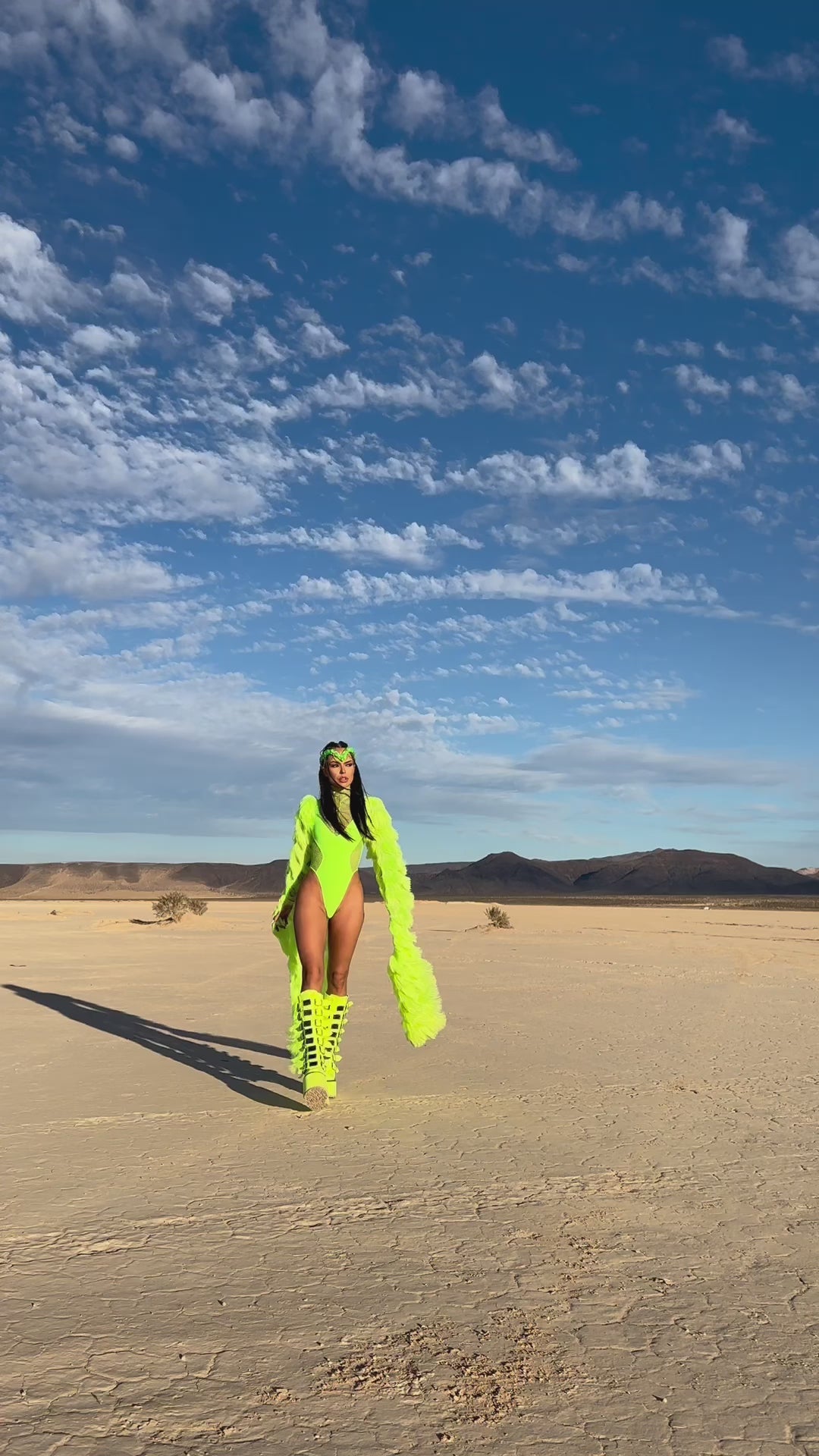 Illuminate the festival scene with our Neon Green Festival Bodysuit, a vibrant and bold outfit perfect for making a statement at Burning Man, rave parties, and other festivals. This stunning bodysuit features a striking neon green color and intricately braided fur sleeves that add an extra touch of glamour and uniqueness. Designed for festival-goers who love to stand out and embrace daring fashion, this bodysuit is made from high-quality materials ensuring comfort and durability throughout your event.